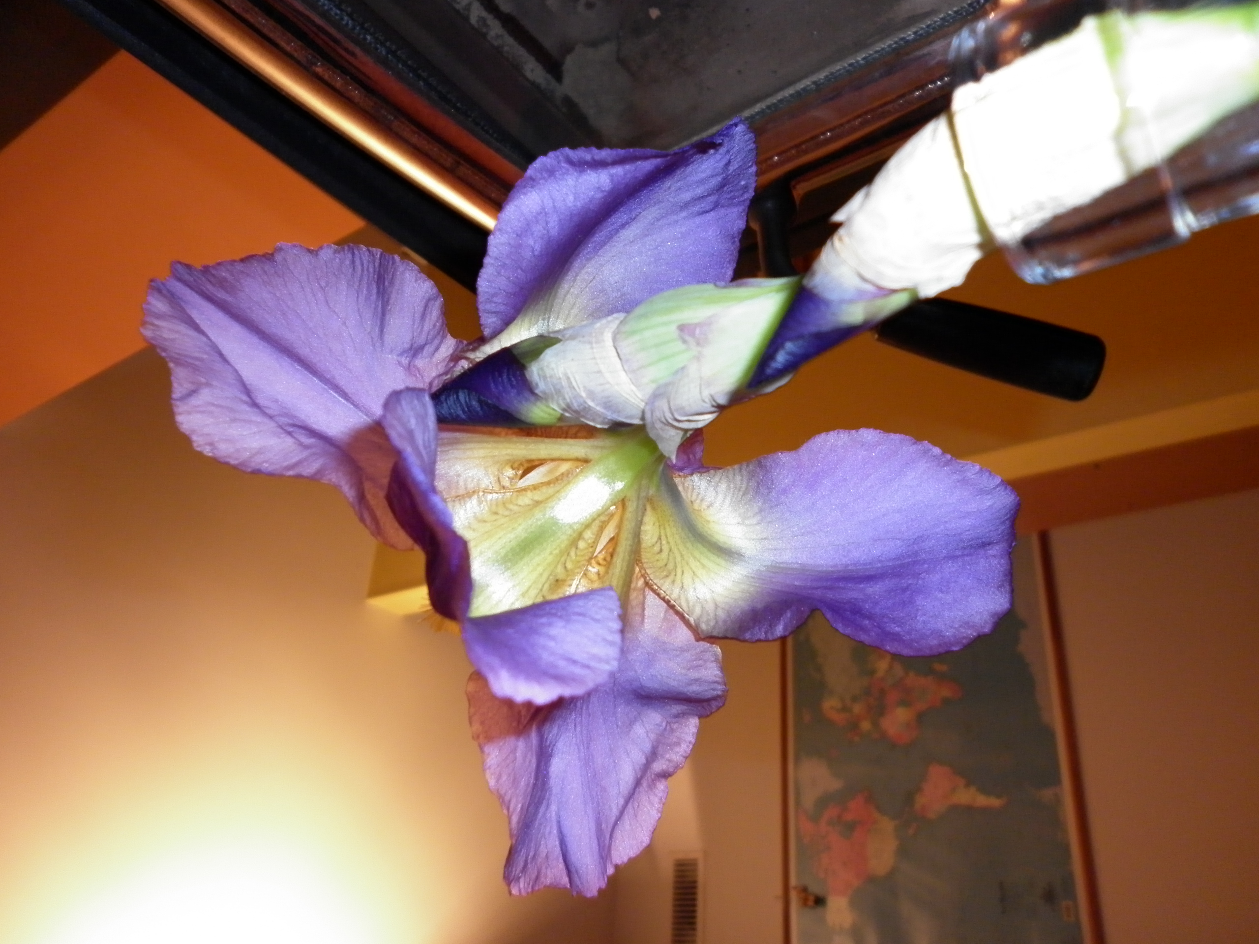 Son regard bleu-mauve d'aveugle à ce monde terrestre. Il ouvre les yeux.
